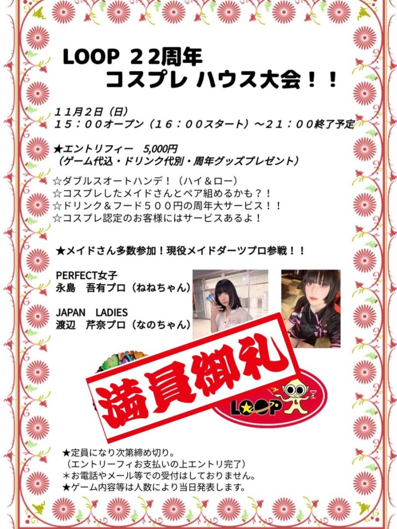 月曜日は定休日の為、店休になります。 ★LOOP CUP 22nd✨anniversary✨ 先日ご参加頂いた皆様お疲れ様でした♬ 優勝  まんじゅう&ぬま 準優勝 いっち&ひよこ 3位  ひで&きり ㊗️おめでとうございます🎊 https://t.co/sG4n1kYaZS