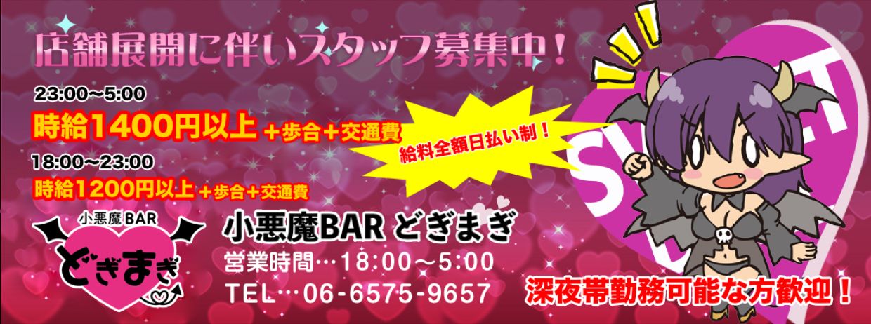 | ãä»äºå 容 | å°æªéã¢ã€ãã«ãã³ã³ã»ããã®BARã§ã⪠10代åŸåã20代åŸåãŸã§ã®å¹ åºã幎霢局ã®ãã£ã¹ããåšç±äžïŒ 幎霢åãã倧æè¿ïŒ åºå ã¯èµ€ãšé»ãåºèª¿ãšããå°ã倧人ã£ãœããã¶ã€ã³ã§ãâ å°ãããŠã¢ããããŒã ãªåããããè·å Žã§ã⪠ã23:00-5:00ãæçµŠ1400åãïŒæ©åïŒäº€éè²» ã18:00-23:00ãæçµŠ1200åãïŒæ©åïŒäº€éè²» â髪è²ã»é«ªåã»ãã€ã«èªç±ïŒãã¢ã¹ã»ã¿ãã¥ãŒOKïŒïŒé¡é¢ã®ãã¢ã¹ã¯éŒ»ãé€ããäžç®æã®ã¿OKãïŒ âæè£ èªç±ïŒïŒç§æå€åOKïŒ â»äžèšæçµŠã¯æäœçµŠã§ããé åŒµãæ¬¡ç¬¬ã§æçµŠã¯ã©ãã©ãäžãããŸãã â»åœåºã¯æçµŠïŒæ©åå¶ã§ãããå®å šæ©åå¶ã§ã®å€åãå¯èœã§ãïŒèå³ãããæ¹ã¯ãçžè«äžããïŒ ã髿 ¡çã®å¿åã«ã€ããŠã â»é«æ ¡çã®æ¹ã¯18æ³ä»¥äžã§23:00ãŸã§å€åå¯èœãªæ¹ã®ã¿åéäžã§ã ïŒé«æ ¡çã§ã18æ³ä»¥äžã®æ¹ã¯22:00以éãå€åå¯èœã§ãïŒïŒ»åŽååºæºæ³ç¬¬61æ¡ïŒœ â ââ èµ€ãšé»ãåºèª¿ãšããåºå â ââ ã«ãŠã³ã¿ãŒ6åžãšïŒããã¯ã¹ïŒ5åžïŒã®å°ããªé ãå®¶çããŒã§ãâ èµ€ãšé»ãåºèª¿ãšããå è£ ã§ãå°ã倧人ã£ãœããŠã«ãžã¥ã¢ã«ãªé°å²æ°ã®åºå ã§ãïŒ ã³ã³ã«ãã§ã§åããããã©ãããŸãã³ãã³ããããã®ã¯ã¡ãã£ãšã»ã»ã»ãã£ãšãããæ¹ã«ããªã¹ã¹ã¡ã§ã⪠ãã£ã¹ãã®å¹³å幎霢ã¯23æ³ïŒ çŸåš10代ã20代åŸåãŸã§ã®å¹ åºã幎霢局ã®ãã£ã¹ããæŽ»èºäžã§ã⪠ããããã¡ã倧æè¿ã ææåã¢ãã¬ã«ã®ã«ãªã¹ãåºå¡ãçŸå®¹ãµãã³çµå¶è ãªã©ã»ã»ã» è²ã ãªãããã¡ãã£ã¹ããåšç±äžïŒ çŸæèãé«ããã£ã¹ããå€ããããããã§åãããšã«ãã£ãŠèªå磚ãã«ããªã£ã¡ããïŒïŒ ãæ·±å€åž¯å€åå¯èœãªæ¹ã倧æè¿ïŒïŒïŒã æ·±å€åž¯ã®æçµŠâæäœ1400åãïŒ ïŒæ©åïŒäº€éè²» ã絊æå šé¡æ¥æãã 絊æã¯å šé¡æ¥æãå¶ã§ãïŒ æ¯åä»äºçµããã«çŸéã§æ¯çµŠããŸãã ããªã·ã£ã¬ããªãã坿ãåãããããèªç±ãªæ Œå¥œã§åãããããã¢ã€ãã«ã奜ãããã¢ãã¡ã»ãã³ã¬ã奜ããããé ã奜ãããããŒãã³ããŒãããŠã¿ããããä»ãããã£ãšå¯æããªãããããã²ãŒã ã奜ããã»ã»ã»ãªã©ãªã© ã²ãšã€ã§ãåœãŠã¯ãŸãæ¹ã¯ãã²ãå¿åäžããïŒ å°æªéã¢ã€ãã«ãã³ã³ã»ãããšãããåºã§ãïŒ å°æªéç³»ã¢ã€ãã«ããŒãã³ããŒãšããŠãäžç·ã«ãåºãçãäžããŠäžããïŒ ãªã·ã£ã¬ã坿ããã®ã奜ããªæ¹ãã¢ãã¡ã»æŒ«ç»ã»é³æ¥œã奜ããªæ¹ããããã¹ãããããšã奜ããªæ¹ã¯å€§æè¿âª æè£ ã»é«ªè²ã»é«ªåèªç±ã ãããèªç±ãªæ Œå¥œã§å€åã§ãã¡ãã⪠ãã¢ã¹ã»ã¿ãã¥ãŒOKïŒïŒé¡é¢ãã¢ã¹ã¯éŒ»ãé€ãäžç®æã®ã¿OKïŒ ãé ã奜ããªæ¹ã«ã¯ãç¹ã«æ¥œããè·å Žã§ãïŒ éã«ãé ãåŒ±ãæ¹ããé ã飲ããªãæ¹ã§ãOKã§ãïŒ é£²é ã®åŒ·èŠã¯ããŸããã®ã§å®å¿ããŠäžããâ ãªãã°é§ ãæ¥æ¬æ©é§ ããããã®å¥œç«å°ïŒ ãªãã°ãŠã©ãŒã¯ B25çªåºå£ ã®ããè¿ãã ãããéšã®æ¥ãã»ãŒæ¿¡ããã«åºå€ã§ãã¡ãããŸãïŒ ãèåœã®æ±äººå 容ã«ã泚æäžããïŒã ããã³ã³ã«ãã§ã®é¢æ¥ã«è¡ã£ããå ¥åºãããã衚èšãããŠãã絊äžäœç³»ãšéãããšããããŸãã äŸãã°ã»ã»ã» âªïžå匷å¶çã«å®å šæ©åå¶ãå§ããããã»ã»ã» âªïžè¡šèšäžã®çµŠäžãå®éã®çµŠäžãšã¯ç°ãªãã»ã»ã» çãã³ã³ã«ãã§ã®æçµŠçžå ŽããããŸãã«ãããé¢ããéé¡ãèšèŒã®ãåºã«ã¯ç¹ã«ã泚æäžããã åœåºã§ã¯æ³ä»€ã»æ¡äŸãå®ããååœããªãã¯ãªãŒã³ãªéå¶ãå¿ãããŠãããŸãã®ã§ãå®å¿äžããïŒ ããä»äºå 容ã å°æªé女åãã³ã³ã»ãããšããããŒã§ã¢ã€ãã«ããŒãã³ããŒãããŠããããŸãâ ãé ãäœã£ããã客æ§ãšäžé話ãããããã«ã©ãªã±ãæã£ãŠå Žãçãäžãããããã©é ãããããããããã®ããæ¥œãããä»äºã§ã⪠æªçµéšè ã倧æè¿ïŒ ãé ã®ç¥èããªããŠããå 茩ã¹ã¿ãããåªããäžå¯§ã«æããŠãããããå®å¿ïŒ 坿ããŠé Œãã«ãªãåªãã女æ§åºé·ãããŸã⪠深å€åž¯åããæ¹å€§æè¿ïŒ ã¢ã€ãã«ãé ä¿¡ãã³ã¹ãã¬ãã¢ãã«ã鳿¥œãç©äœããªã©... å人掻åããŠããæ¹ãæè¿ïŒ â ã23:00-5:00ãæçµŠ1400å以äžïŒæ©åïŒäº€éè²» â ã18:00-23:00ãæçµŠ1200å以äžïŒæ©åïŒäº€éè²» â»å®å šæ©åå¶ããåžæã®æ¹ã¯å®å šæ©åå¶ã§ã®å€åãå¯èœã§ãïŒ â é±1åïœOK â 1æ¥4æéïœOK â 絊æå šé¡æ¥æãå¶ â ç§æå€åOKïŒæå®ã®å¶æã¯ãããŸããã奜ããªæ Œå¥œã§åããŠäžãããïŒ â åŒã£è¶ãè£å©ã»äœå® æåœããïŒïŒèŠå®ããïŒ â»äœéšå ¥åºã¯è¡ã£ãŠãããŸãã èå³ãããæ¹ã¯ããã²äžåºŠãé£çµ¡äžããïŒ ãã€ãã¿ãŒ â https://twitter.com/bardogimagi ã¡ãŒã« â bardogimagi@gmail.com ãã³ã³ã«ãã§ã§ã®å€åã«äžå®ãããæ¹ã ã³ã³ã«ãã§ã¯è¥è ã®éã§æµè¡ã£ãŠãã人æ°ã§æ¥œãããä»äºã§ãã è¿å¹Žæ°ããã³ã³ã«ãã§ãç¶ã ãšæ°èŠãªãŒãã³ããŠããŸãããæ®å¿µãªããå€ãã®ã³ã³ã«ãã§ã§ãã©ãã«ãå€çºããŠããŸãã åºèéå¶è ã