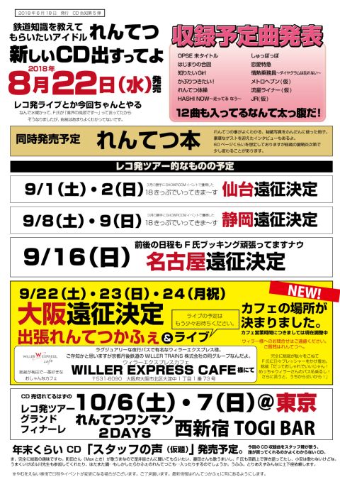 併せてレコ発ツアーといたしまして各地への遠征を予定しております。
