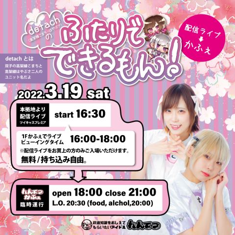 2022年3月19日(土)『れんてつ本拠地ライブオンライン~detach主催 ふたりでできるもん!~』&『高架線かふぇ ふたりでできるもん!』