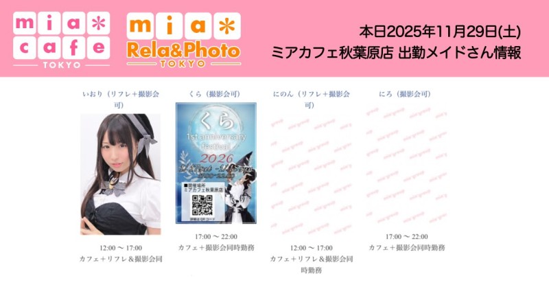 👑本日11月29日(土)のミアカフェ秋葉原店